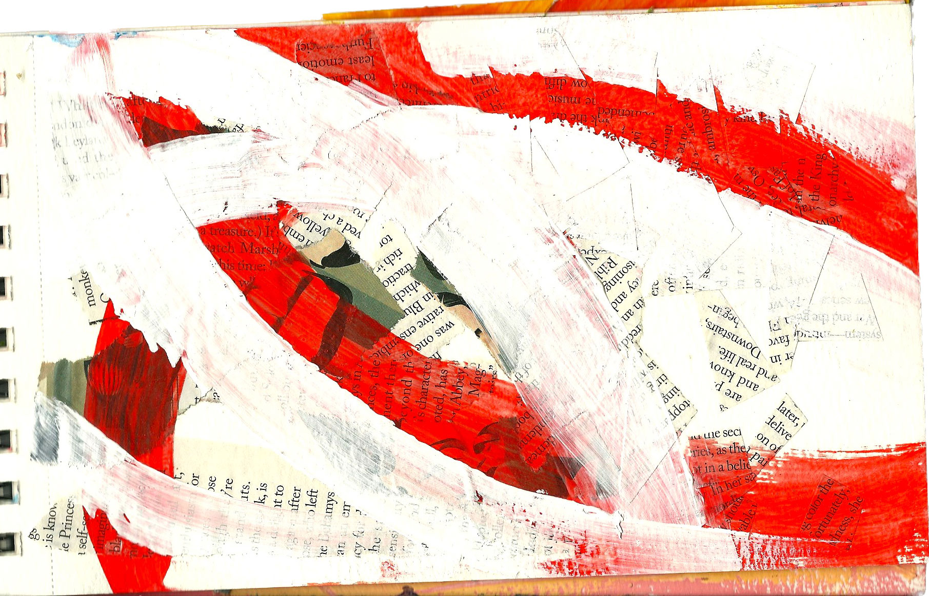 This one has text and photos cut and torn from a magazine. Once dry I added some paint.
