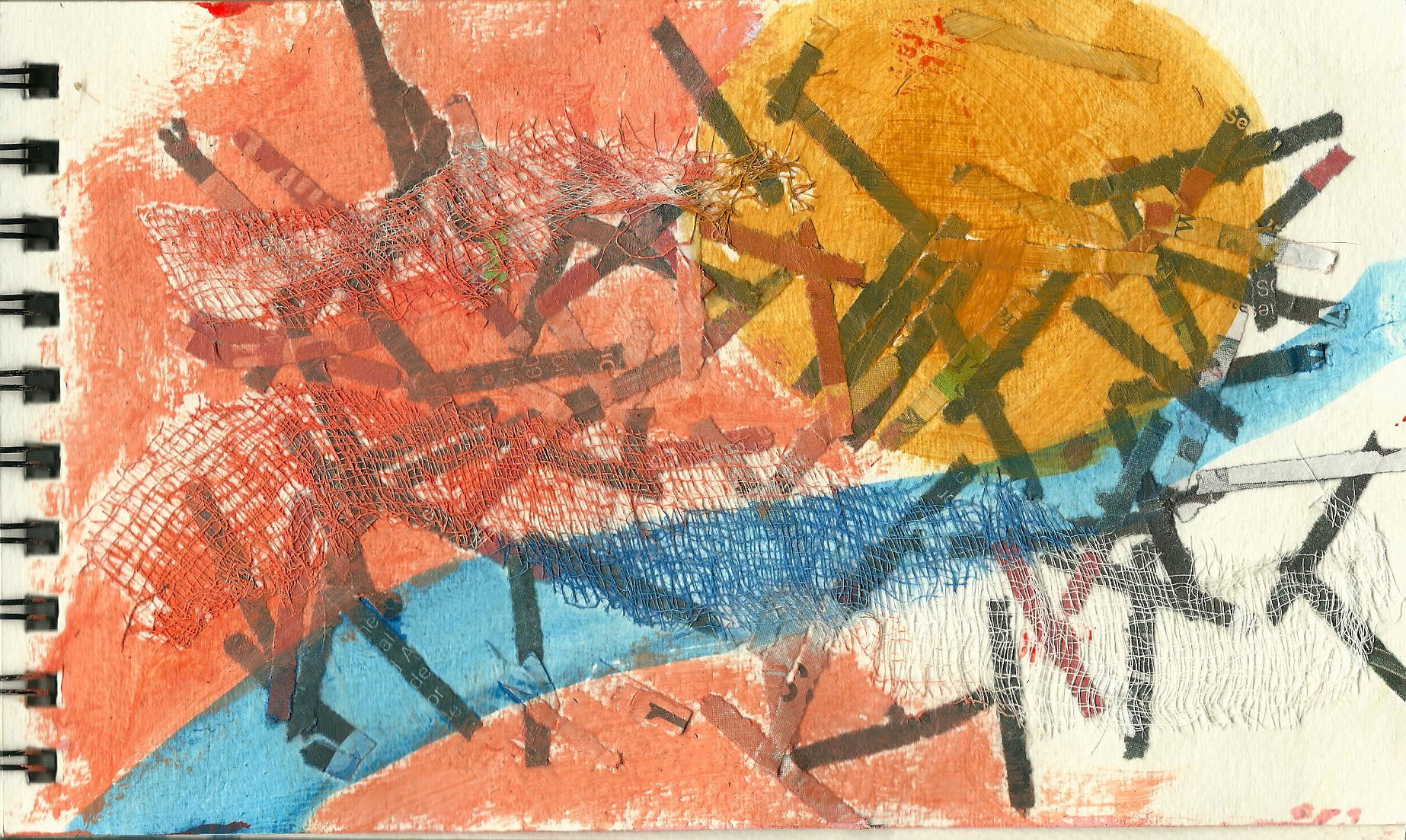 Here I painted over a background of shredded paper and bits of cheese cloth.