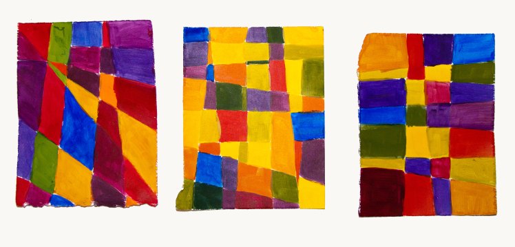 I painted three grids yesterday using various amounts of colors from around the color wheel. I like all three, but find the center one most visually pleasing. This was from Jane Davies’ online class Unlocking the Secrets of Color.