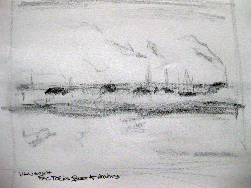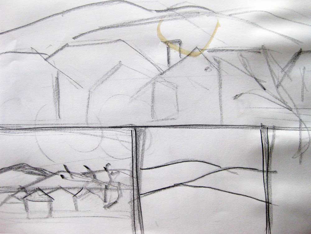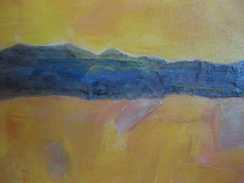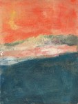 I continued looking at horizons in  The Abstract in Nature with Eva Bovenzi, at UC Berkeley Extension.  We’ve spent time in class looking at ways contemporary artists have used nature as inspirations for abstract art works.  For the horizon project, we started with a field trip to Rodeo Park in the Marin Headlands.  Each of us trekked out to a quiet spot where we could observe the environment with all of our senses, then make written notes and/or drawings in our notebooks.  We followed up with some in class discussions and a slide presentation where we looked at work by artists, including Mark Rothko, Georgia O’Keefe, Michael Moore, Patsy Krebs, Arthur Dove, and Paul Klee, who all used the horizon as a source of inspiration.