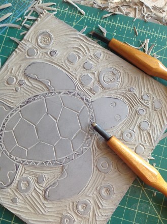 Carving the linoleum