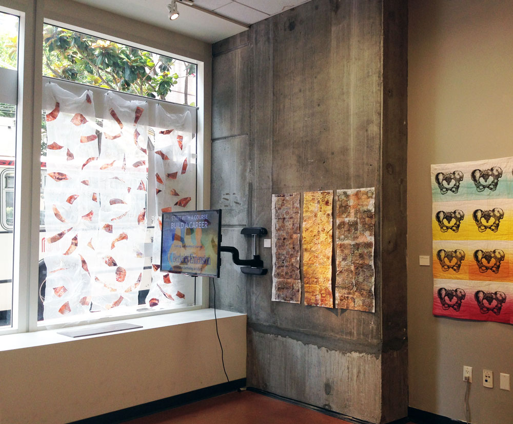 I installed the show a day early, so it’s up and available for viewing. I’m pleased with how great it looks in this space. I chose work from my portfolio created for the Post-Baccalaurate Certificate in Visual Arts plus a couple newer pieces. The show is at